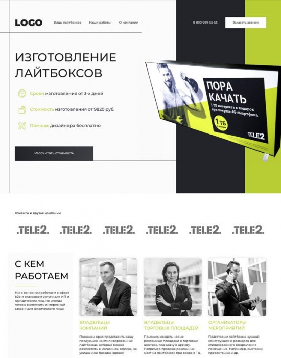 Для KW-Agency: лендинг для производства лайтбоксов по прототипу за 3 дня