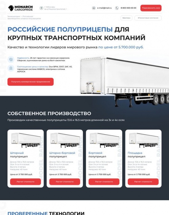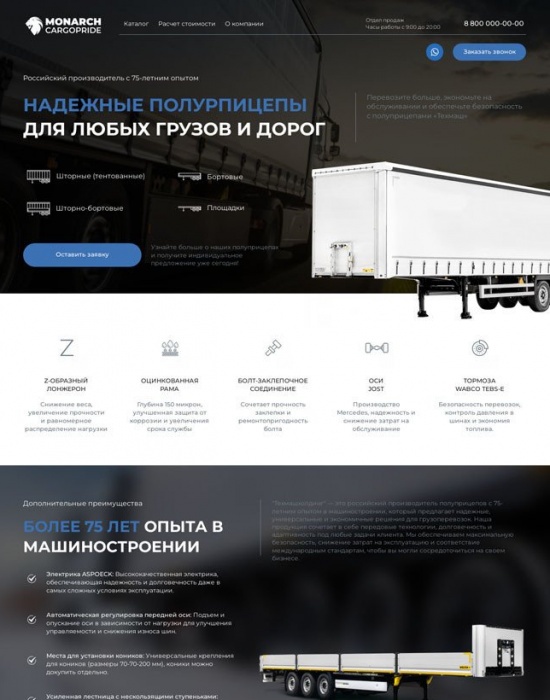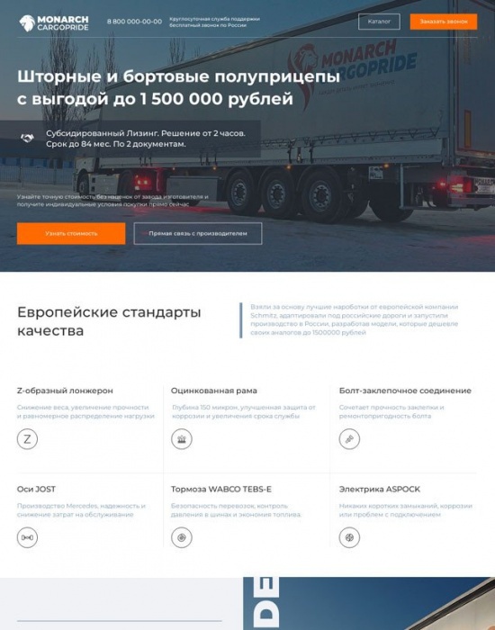 А/Б-тест: вторая версия лендинга для продажи полуприцепов Monarch