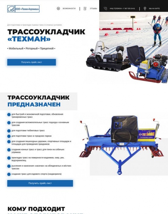 Лендинг для производителя трассоукладчиков «Техман» для биатлонных трасс