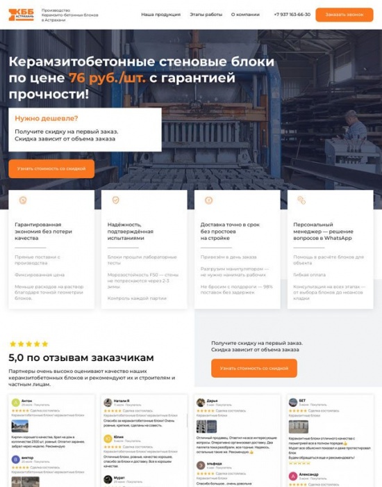 Лендинг под рекламу для производителя керамзитобетонных блоков
