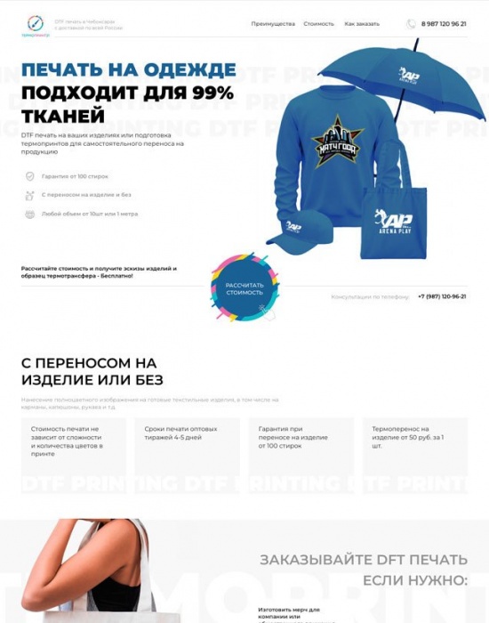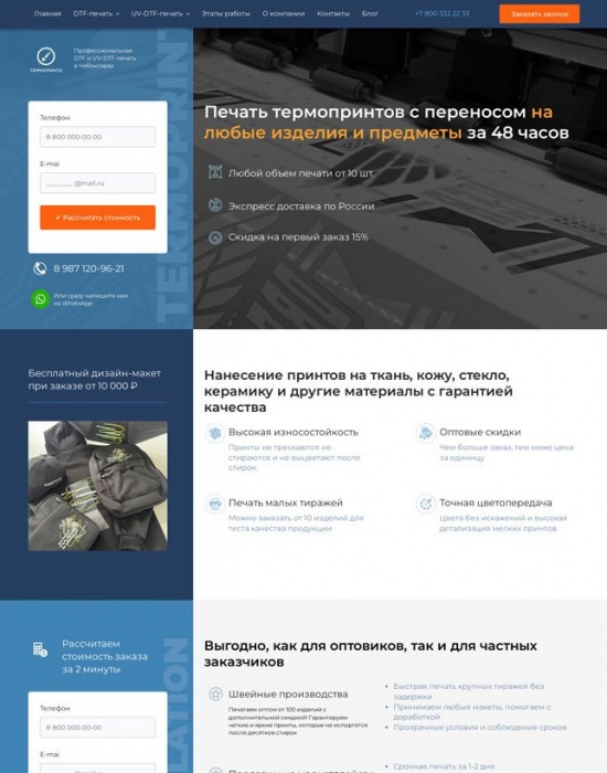 Узконишевый лендинг под запросы швейных производств для «Термопринт 21»