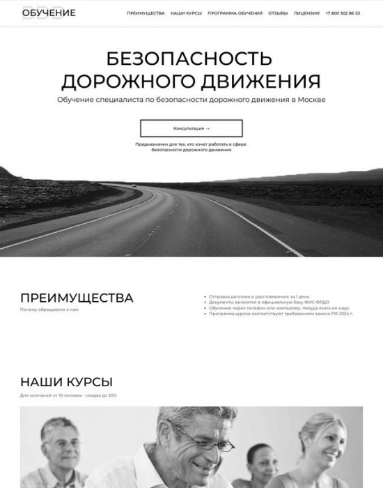 Лендинг по готовому прототипу для компании в сфере охраны труда