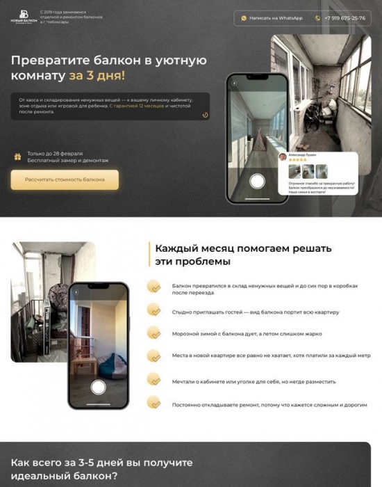А/В-тест лендингов для снижения стоимости лида по ремонту балконов