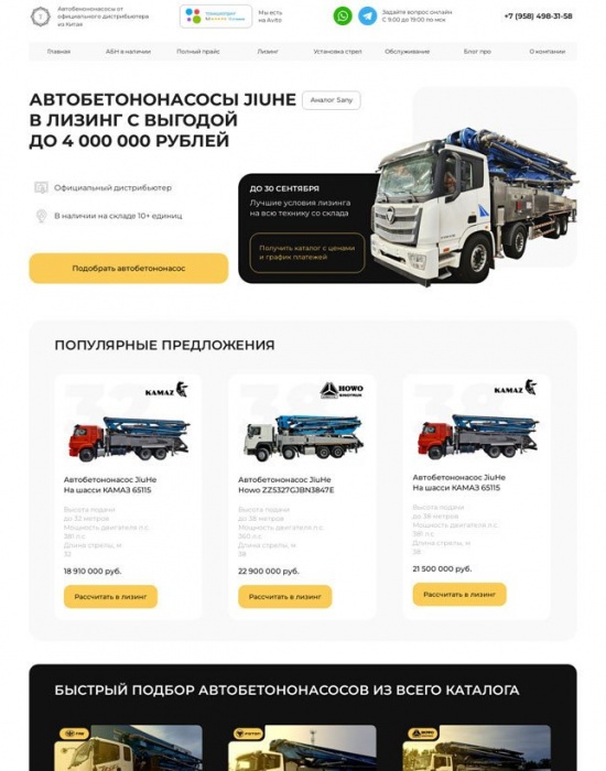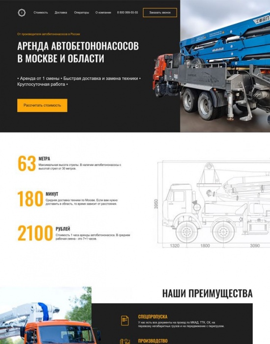 Лендинг по аренде автобетононасосов за 4 дня