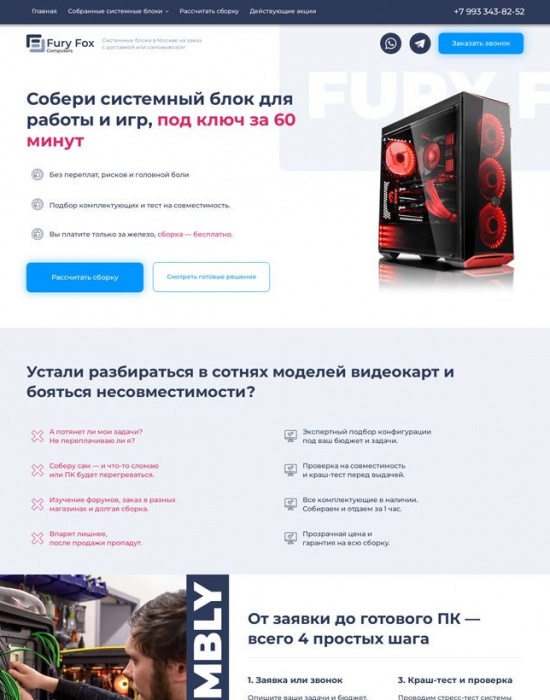 Лендинг для сборки ПК с каталогом готовых системных блоков