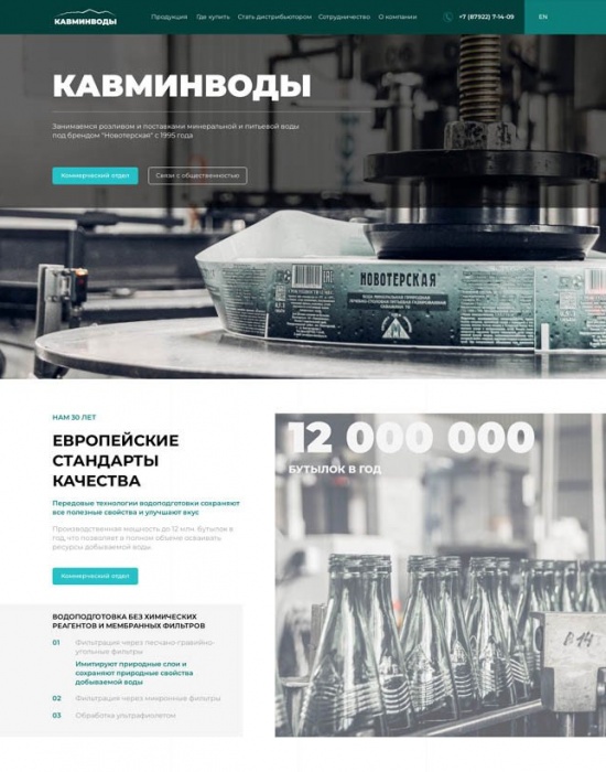 Дизайн главной страницы сайта для завода «Кавминводы» за 2 дня