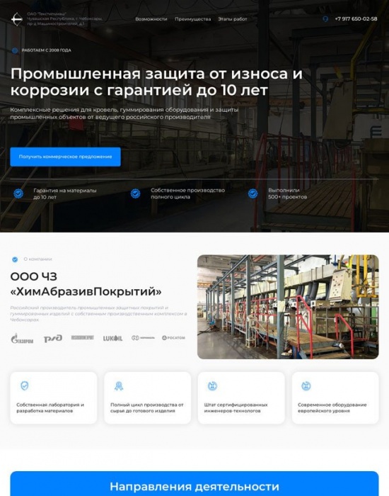Новый сайт для завода химических покрытий в рамках системы холдинга