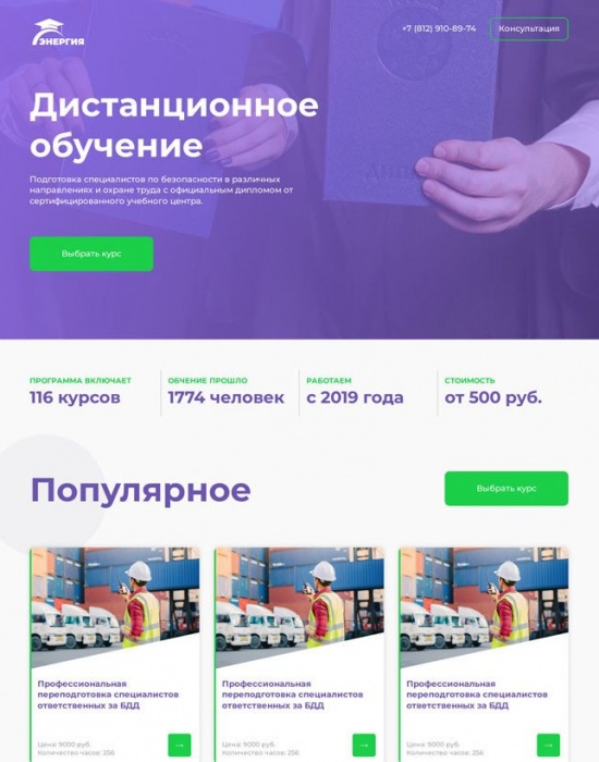 Вторая версия сайта учебного центра "Энергия" для проведения А/Б-теста