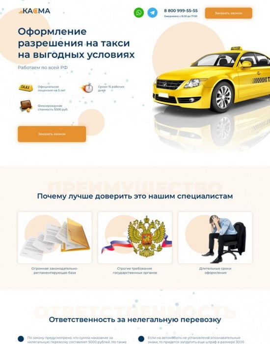 Лендинг для услуги оформления такси на выгодных условиях