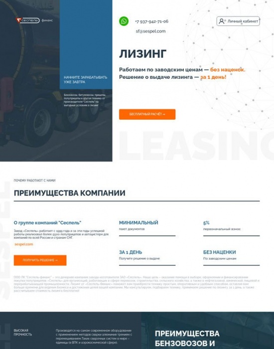 Редизайн сайта для лизинга полуприцепов собственного производства за 3 дня
