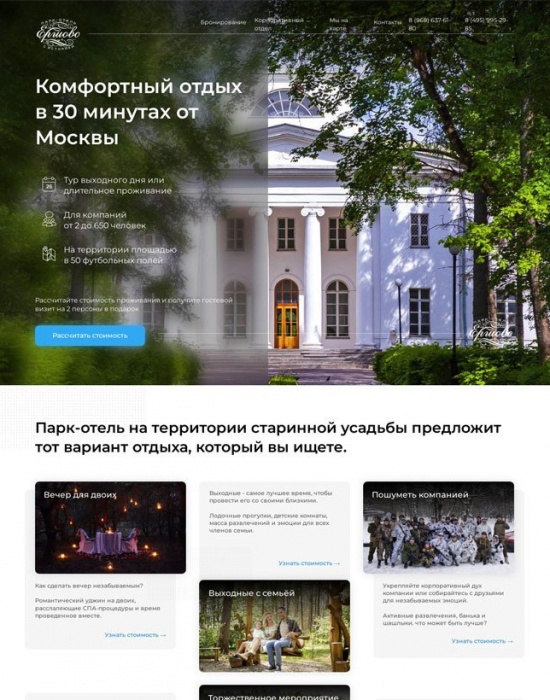 Дизайн-концепция для сайта парка-отеля «Ершово» за 2 дня