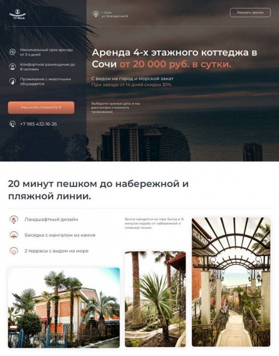 Лендинг для виллы в Сочи: заявки на аренду от 800 рублей