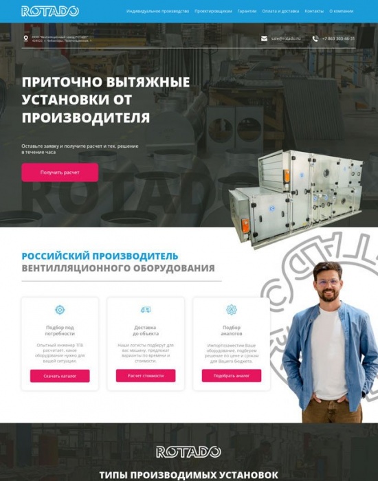 Разработка лендинга для завода «Ротадо» по готовому прототипу