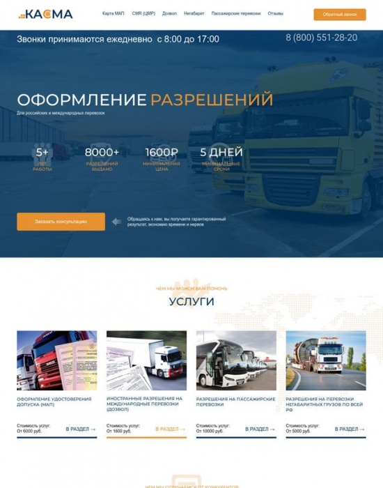 Сайт для услуг по оформлению разрешений на транспортные перевозки