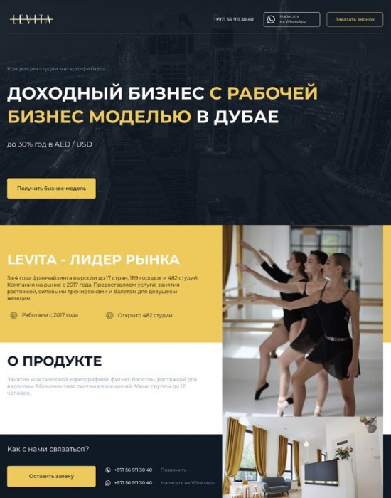 Лендинг для продажи франшизы школы танцев в Дубае за 4 дня