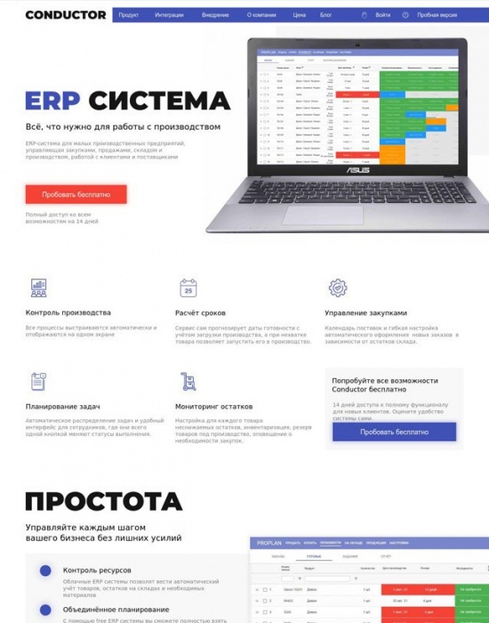 Лендинг для ERP-системы, созданный для команды-разработчика Tobiz