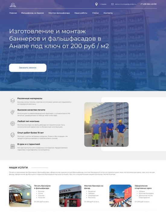 SEO-сайт для выхода на рынок монтажа баннеров в Анапе для «Актив-Монтаж»