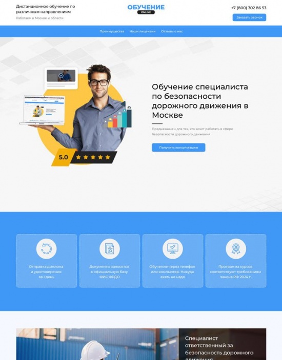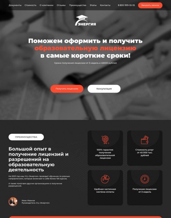 Лендинг по прототипу для услуг по лицензированию образования