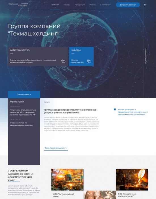 Разработка главного многостраничного сайта для промышленного холдинга
