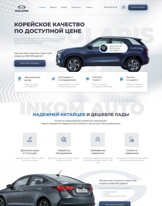 Лендинг для тестирования спроса на автомобили Solaris в Астрахани