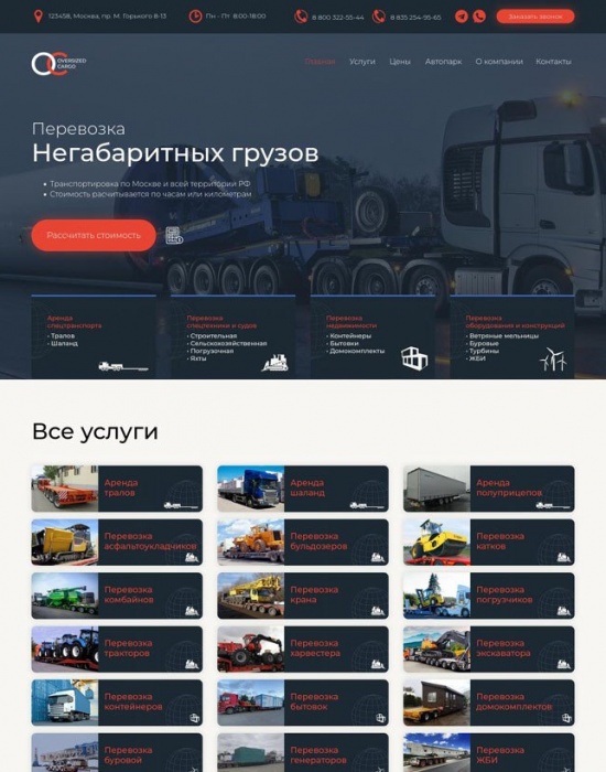 Лендинг для перевозки негабарита по готовому прототипу