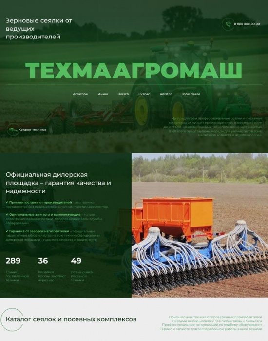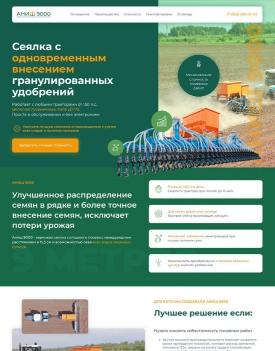 Лендинг для сеялки собственной разработки холдинга. Заявки от 1700 руб.