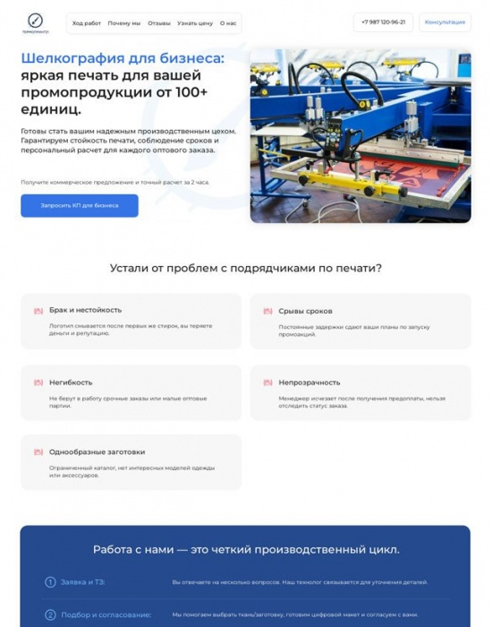 Лендинг под ключ за 7 дней: продажа услуг шелкографии для бизнеса