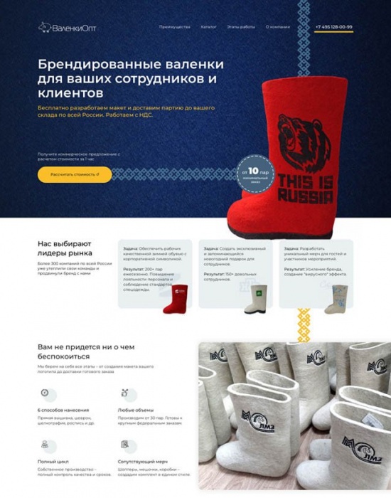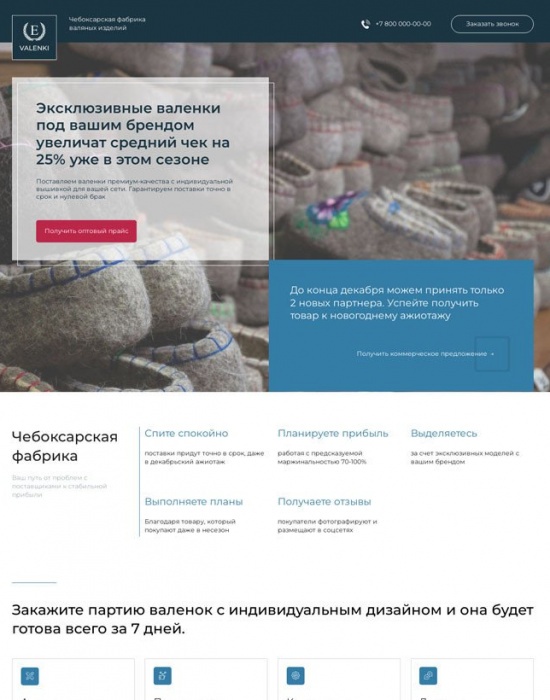 Уникальный лендинг для оптового поставщика валенок за 5 дней