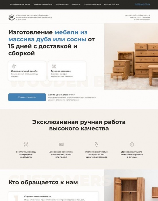 Лендинг для столярной мастерской Wooden Bull: запуск рекламы